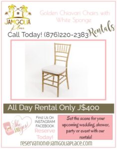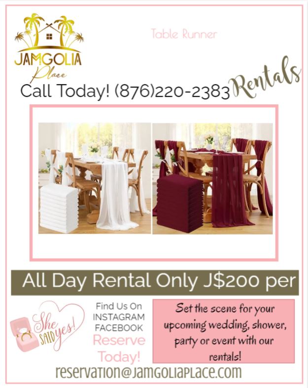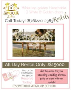 at JamGolia Place. From table settings to backdrops, we’ve got you covered.